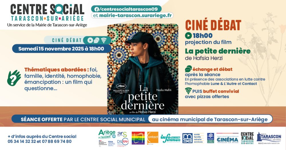 Notre association Contact co-animera un ciné-débat autour du nouveau film "La petite dernière" en partenariat avec le Centre social municipal de Tarascon-sur-Ariège