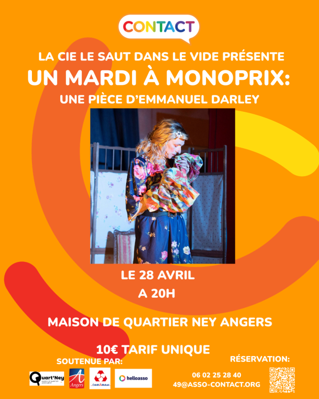 L’association Contact Maine-et-Loire est très heureuse de vous proposer la pièce de théâtre Le mardi à Monoprix, mardi 28 avril à 20h, au Quart’Ney à Angers.