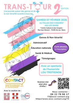 Contact a le plaisir de vous inviter à participer à la 2e édition de son TRANS-TOUR 2026 : une journée d’échanges, conviviale et festive, sous forme d’ateliers, tables rondes, exposition et stands, sur le thème du genre, la non-binarité et la transidentité.