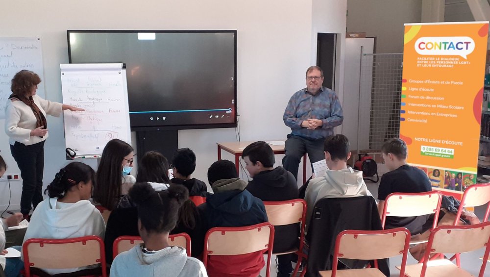 Florence, Jean et Anna (en observatrice), ont participé le 20 Mars 2026, à une intervention en milieu scolaire au collège des 3 Vallées à la Voulte dans l'Ardèche. Comme les années précedentes, Contact Drôme-Ardèche intervient dans le cadre de journées autour de la santé et de la citoyenneté auprés des collégiens, organisées au sein du collège. Ce fut l'occasion d'échanger autour des registres de l'identité avec 2 classes de 4ème dont la 4ème SEGPA. Les élèves ont pu découvrir la diversité du genre humain dans sa complexité et sa réalité qui ne rentre pas toujours dans la norme binaire.